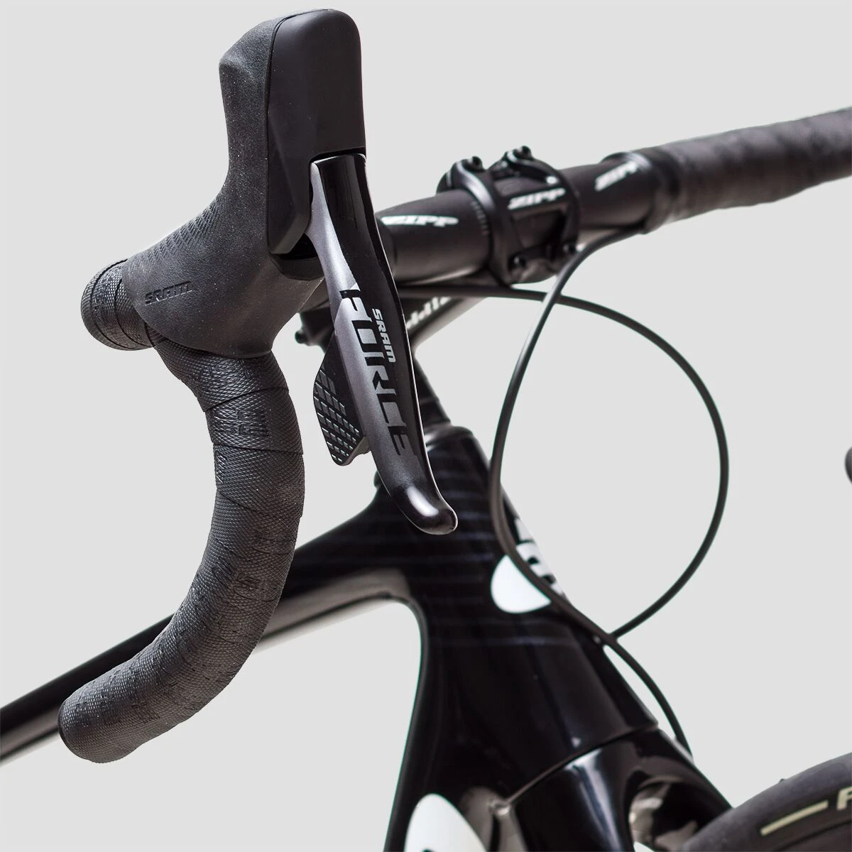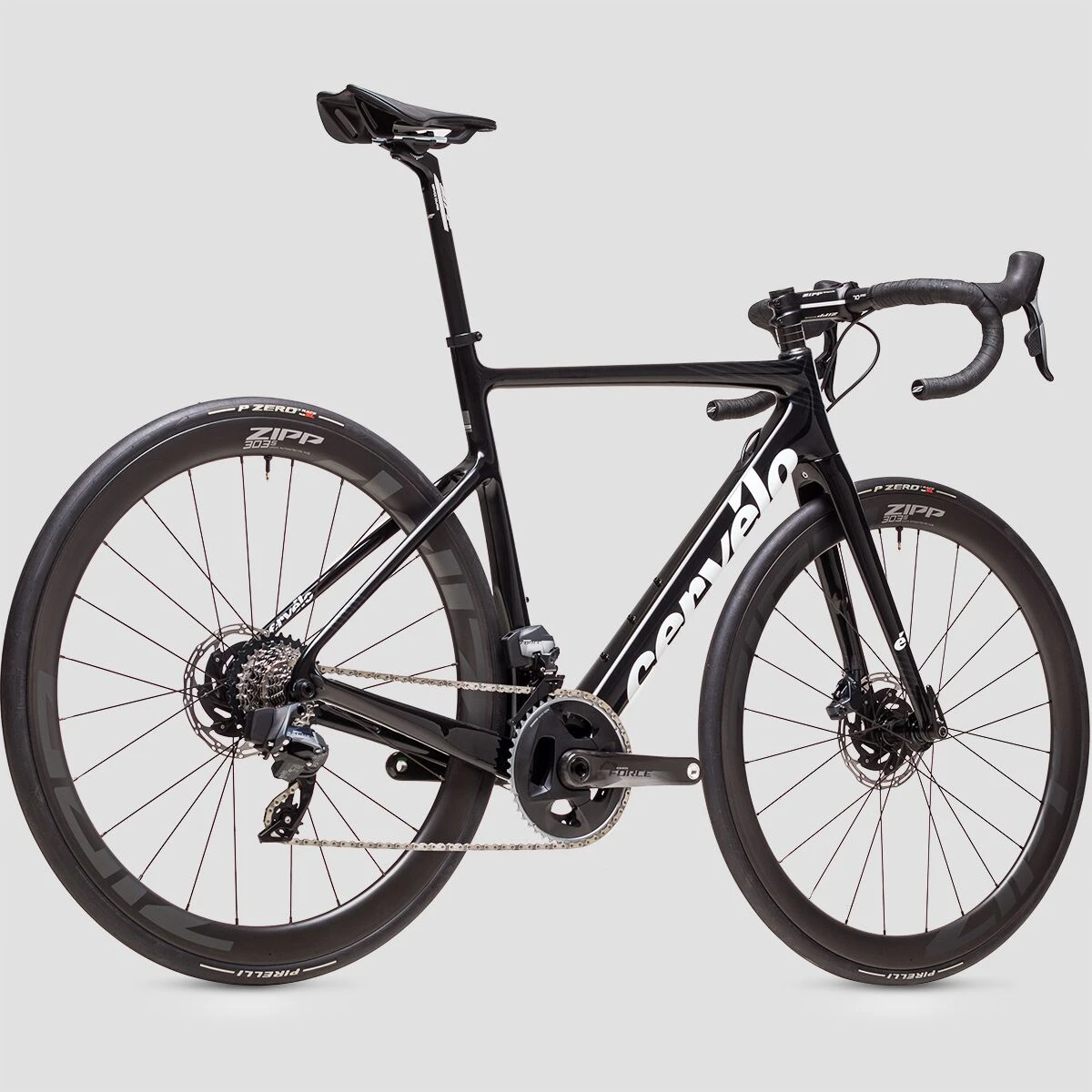 The 12-speed SRAM Force AXS groupset delivers crisp, smooth shifting thanks to its updated technology and stiff, lightweight design. Using a 46/33T chainring combination and a 10-33T cassette range, we are provided with the gearing we need for any climb, downhill, gravel path, or fast flat we encounter during our adventure. We have superior versatility, control, and speed when rolling on the Zipp 303s wheelset with 28mm Pirelli P Zero Race SL Tubeless Tires, and can run a lower tire pressure thanks to its tubeless design.